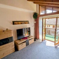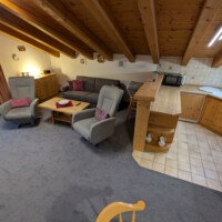 Die Wohnung verfügt über ein separates Schlafzimmer mit Doppelbett und Nordbalkon, ein Bad mit Dusche, Badewanne und WC sowie einen offenen Küchenbereich mit Kühlschrank, 4-Platten-Herd und Essecke. Das Wohnzimmer ist mit Flachbild-TV, Stereoanlage ausgestattet und öffnet auf den Südbalkon. Bettwäsche + Handtücher sind vorhanden.